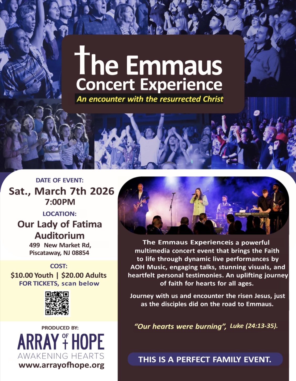 The Emmaus Concert Experience at Our Lady of Fatima Parish – Saturday, March 7th at 7:00pm