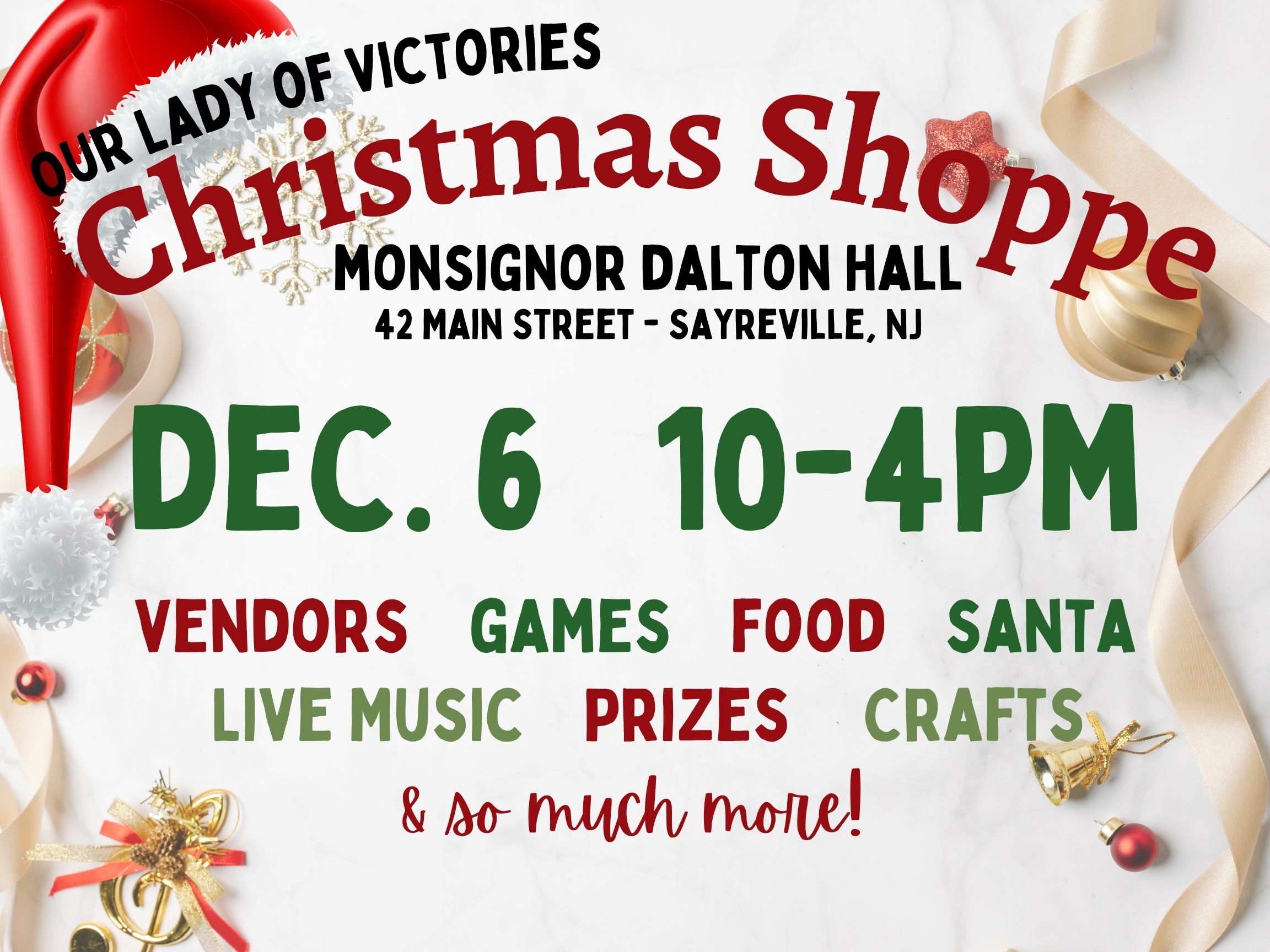 General News Our Lady of Victories Christmas Shoppe EASTER SUNDAY SERVICES – APRIL 20, 2025 For general news, please refer to these sites: U.S. Catholic National Catholic Reporter Catholic News Service Vatican Also, please follow our Twitter & Facebook feed for more news that might be of timely interest to parishioners. And for news from the Diocese of Metuchen, please visit the following: Diocese of Metuchen The Catholic Spirit